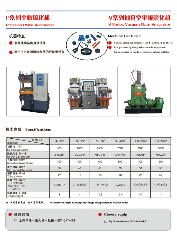 主要作用:钢丝绳芯输送带、平型胶带、胶板、高分子纳米板材、聚氨酯板材、碳纤维复合板材、合成石板材、合成铜板材,硅胶板材等平板类产品的成型压制生产,它具有热板单位面积大,压力均衡,设备操作可靠、维修量少等优点。